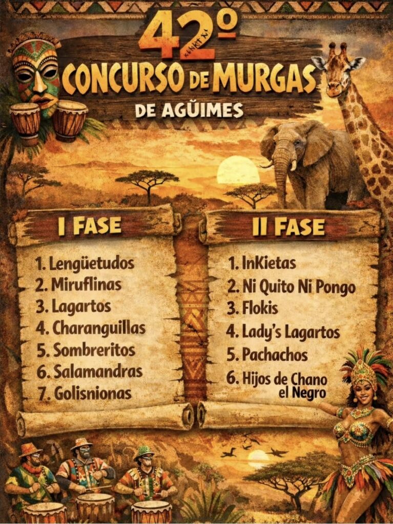 El Carnaval de Agüimes 2026 comienza oficialmente a tomar forma con uno de los actos más esperados por los colectivos y aficionados: el sorteo del orden de actuación del 42º Concurso de Murgas Adultas, celebrado este viernes en el local de la murga Los Lagartos. Las dos primeras fases se celebrarán los días 10 y 11 de febrero, mientras que la final será el viernes 13.