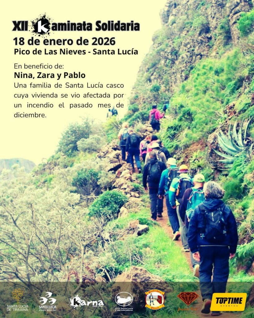 El municipio de Santa Lucía de Tirajana acogerá el próximo domingo 18 de enero de 2025 la XII Kaminata Solidaria, una iniciativa deportiva y solidaria que tiene como objetivo recaudar fondos en beneficio de la familia de Nina, Sara y Pablo, cuya vivienda quedó completamente afectada por un incendio ocurrido el pasado 3 de enero.