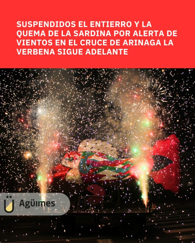El Entierro y la Quema de la Sardina, actos previstos para la tarde de este sábado dentro de la programación del Carnaval en el Cruce de Arinaga, quedan suspendidos debido a la situación de alerta por fuertes vientos que continúa activa en el municipio.